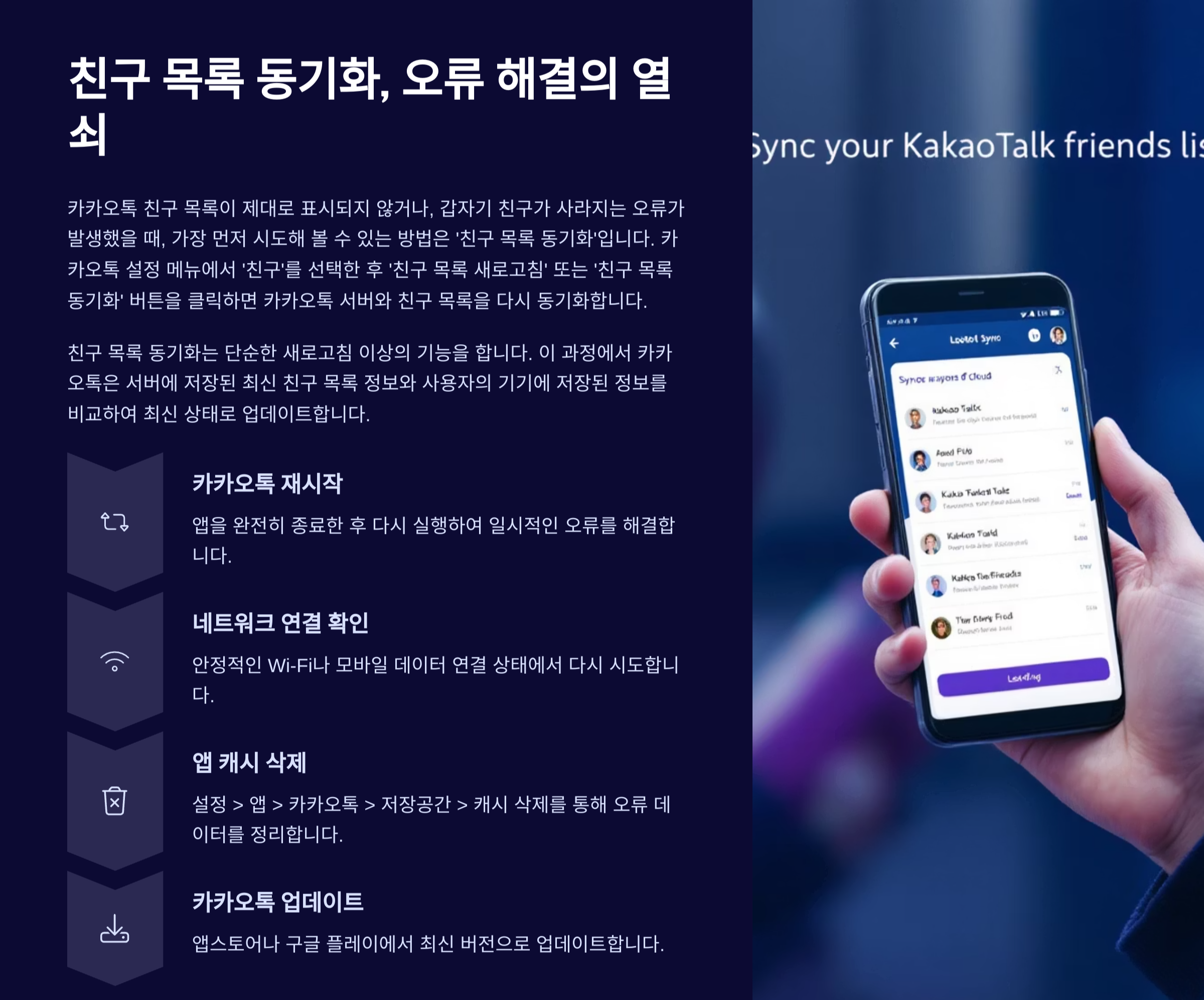 친구 목록 동기화 후에도 문제가 지속될 경우 시도할 수 있는 방법