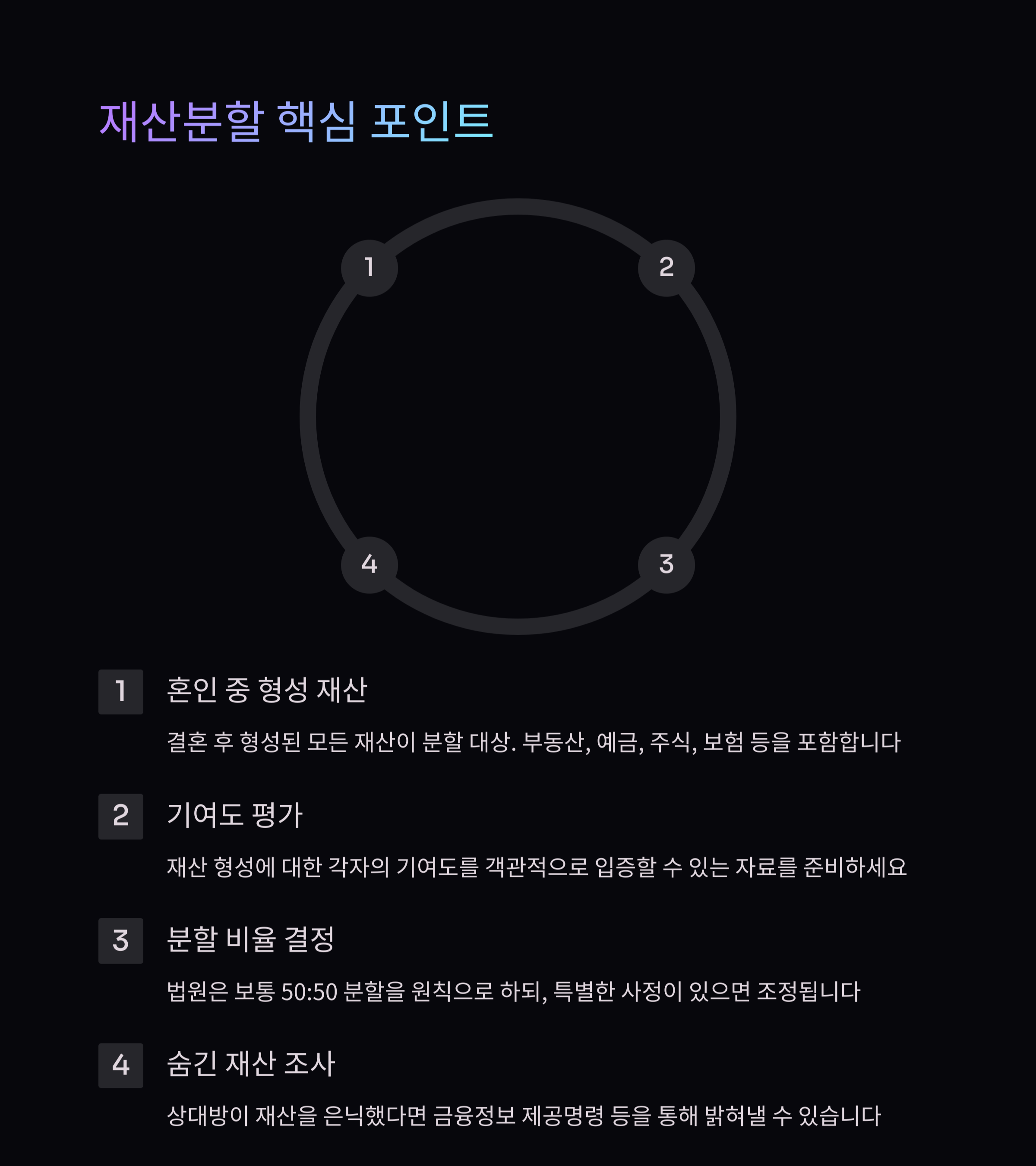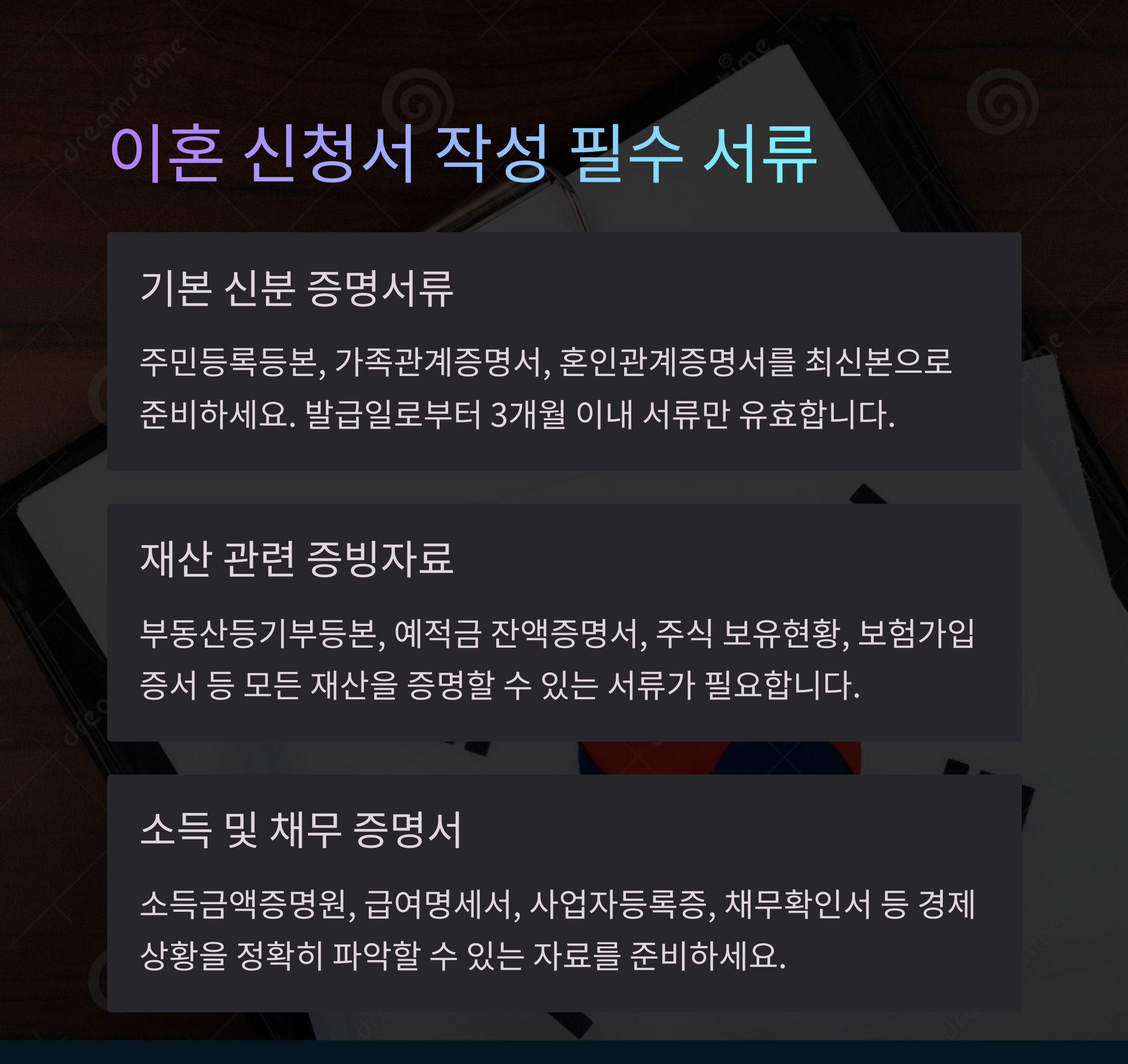 🎯 핵심 주의사항: 협의이혼 절차를 시작하기 전, 각자의 재정 상태와 권리를 명확히 이해하는 것이 중요합니다. 이를 통해 불필요한 오해나 갈등을 줄일 수 있습니다.