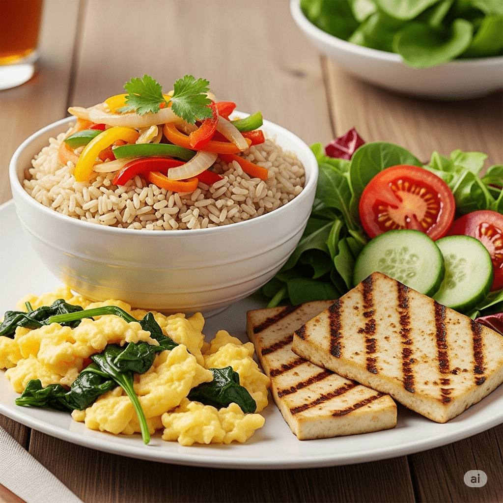 • 단백질 가득 계란 스크램블: 계란 2개에 시금치, 방울토마토를 넣고 스크램블! 간단하지만 단백질과 비타민을 동시에 섭취할 수 있는 최고의 조합이에요.