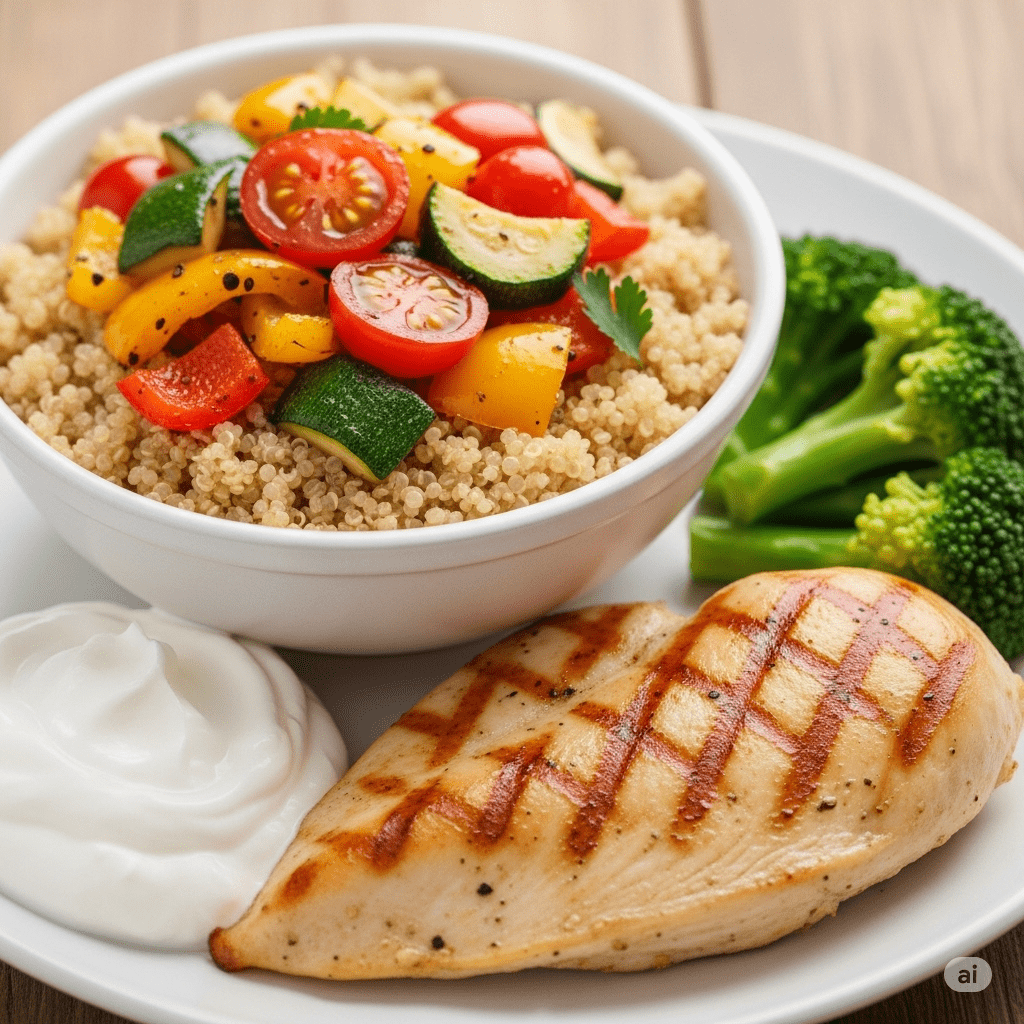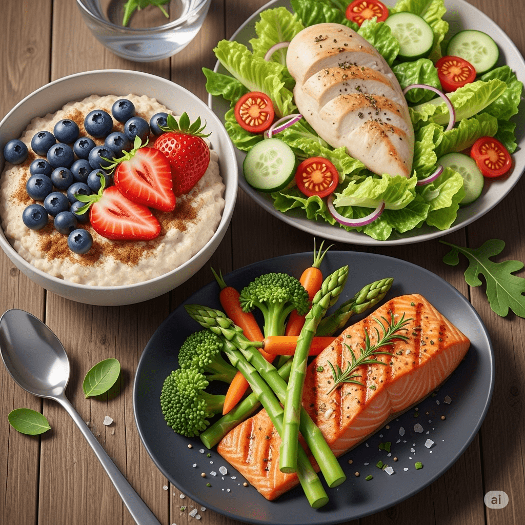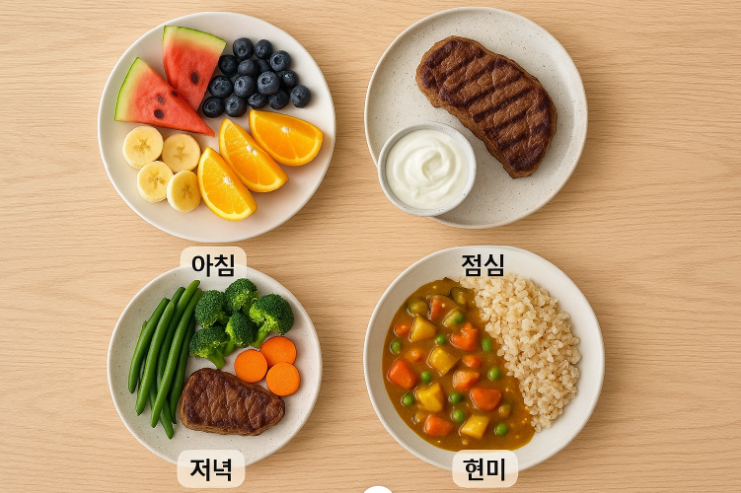양질의 단백질, 복합 탄수화물, 그리고 신선한 채소를 매끼 균형 있게 포함하는 것이 중요해요. 너무 어렵게 생각하지 마세요!