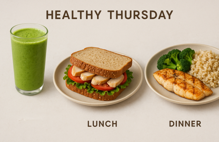 목요일 채소 스무디 닭가슴살 샌드위치 생선구이 + 현미밥