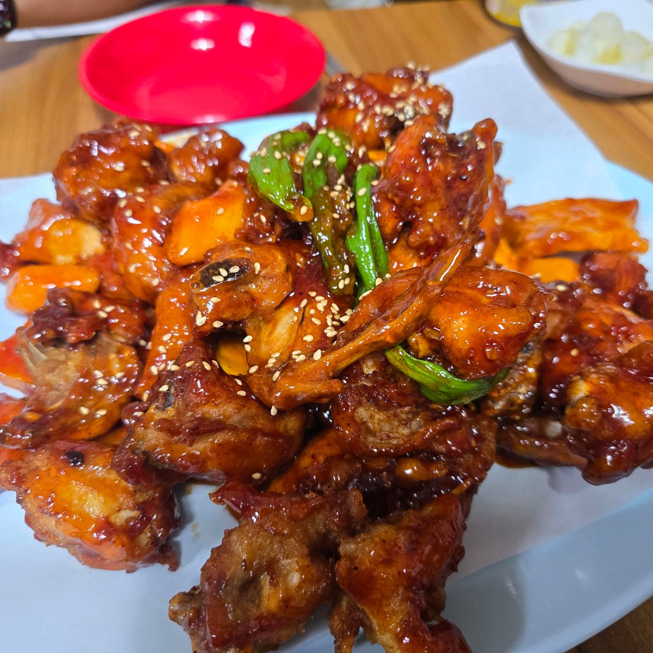 양념치킨의 양념은 과하지 않은 전통 방식으로 만들어져 아이들도 충분히 즐길 수 있는 순한 맛입니다. 인공조미료가 아닌 천연 재료로 만든 양념이 깊은 풍미를 선사합니다.