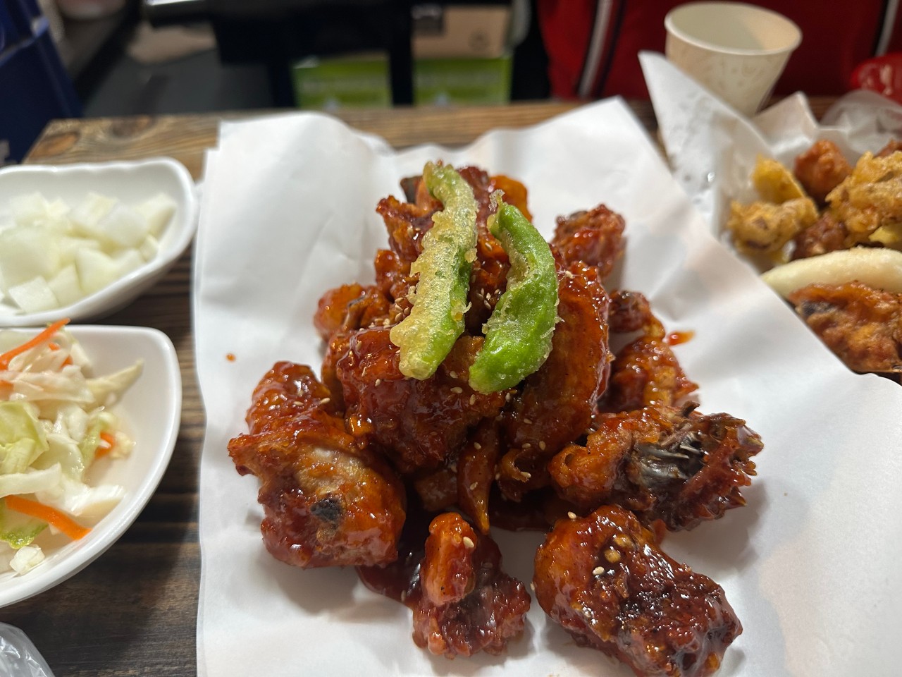 - 꽈리고추 튀김: 매콤한 맛으로 느끼함을 잡아주는 개운함. 비타민C 풍부