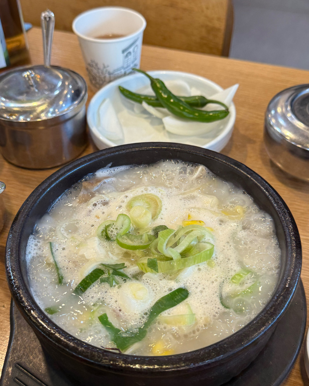 특별 팁: 들깨가루와 다진 마늘을 함께 넣고 청양고추를 조금 추가하면 삼도순대국만의 특별한 맛을 완성할 수 있습니다. 이는 오랜 단골들이 선호하는 조합입니다.