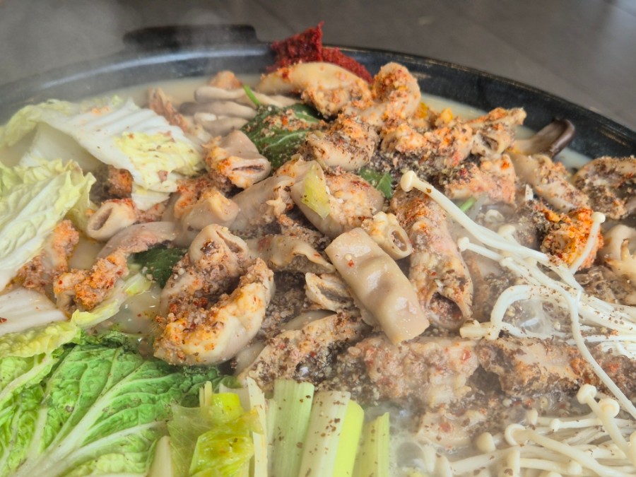 "소곱창전골은 국물이 깊고 기름층이 가벼워 깔끔합니다."