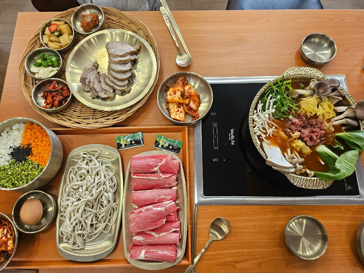 • 🥩 신선한 소고기: 샤브샤브용으로 얇게 썬 고급 부위의 부드러운 소고기