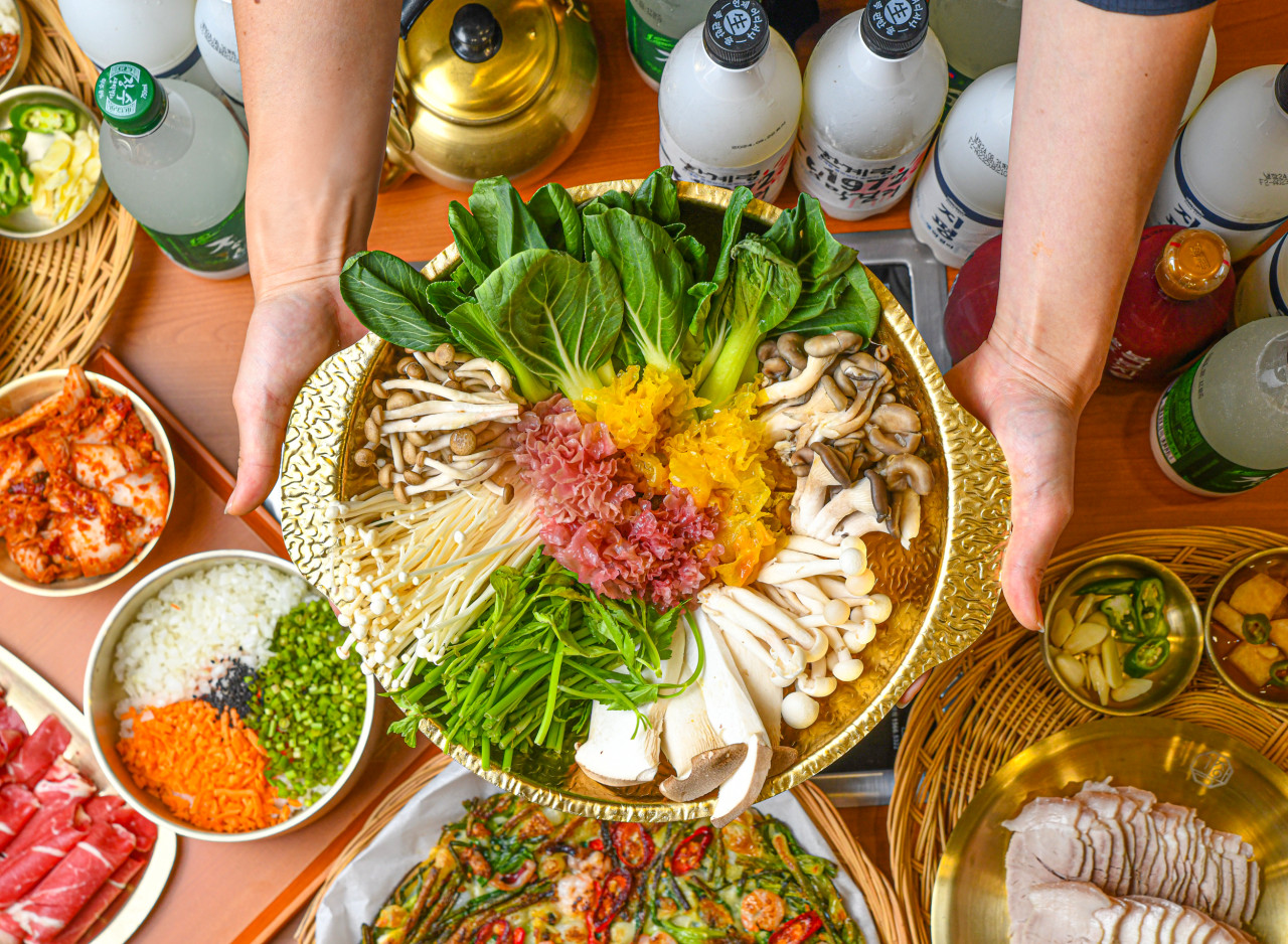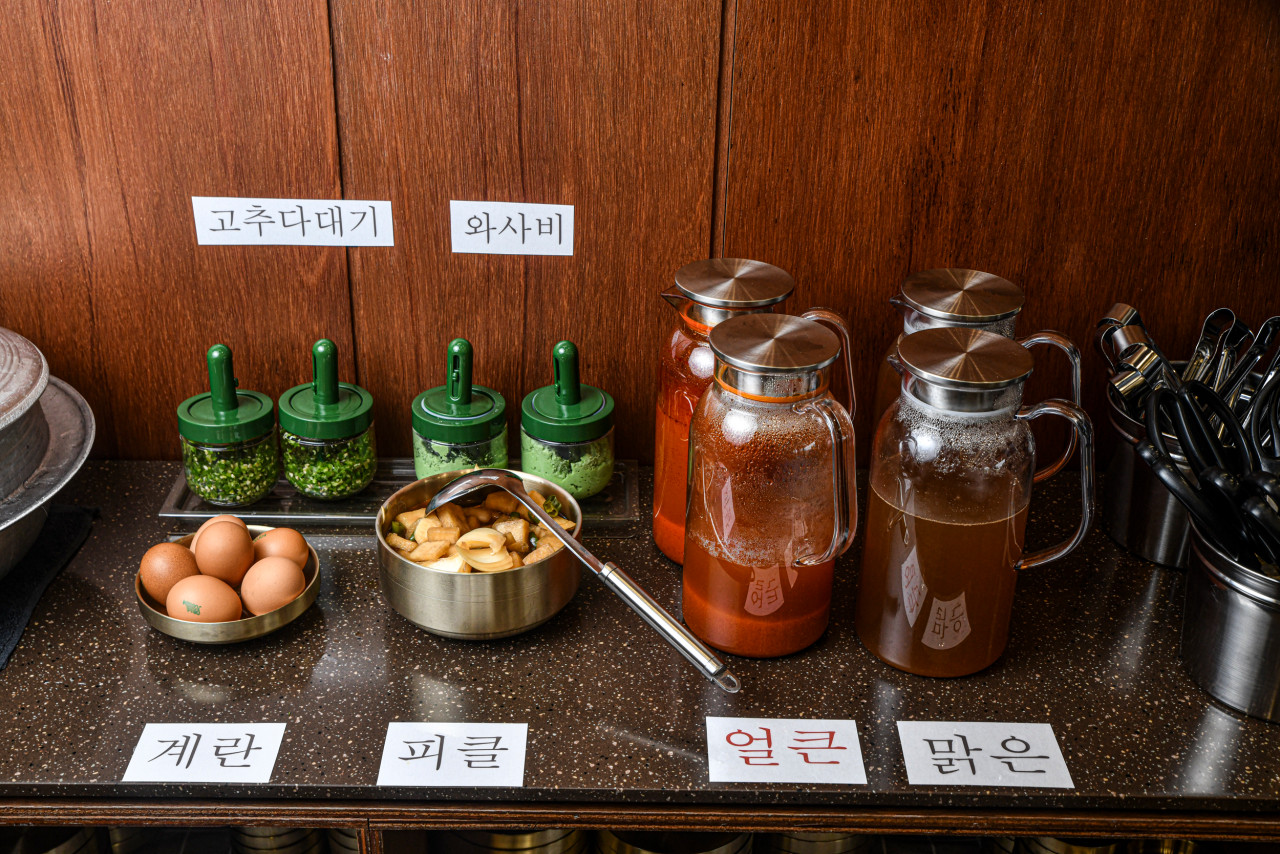 4) 서빙: 끓는 육수에 재료들을 넣고 순서대로 즐기기