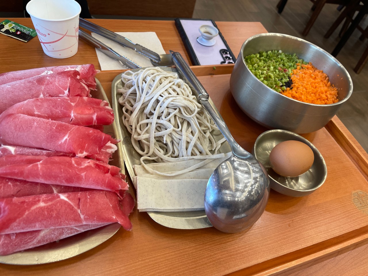 • 🥩 신선한 소고기: 샤브샤브용으로 얇게 썬 고급 부위의 부드러운 소고기