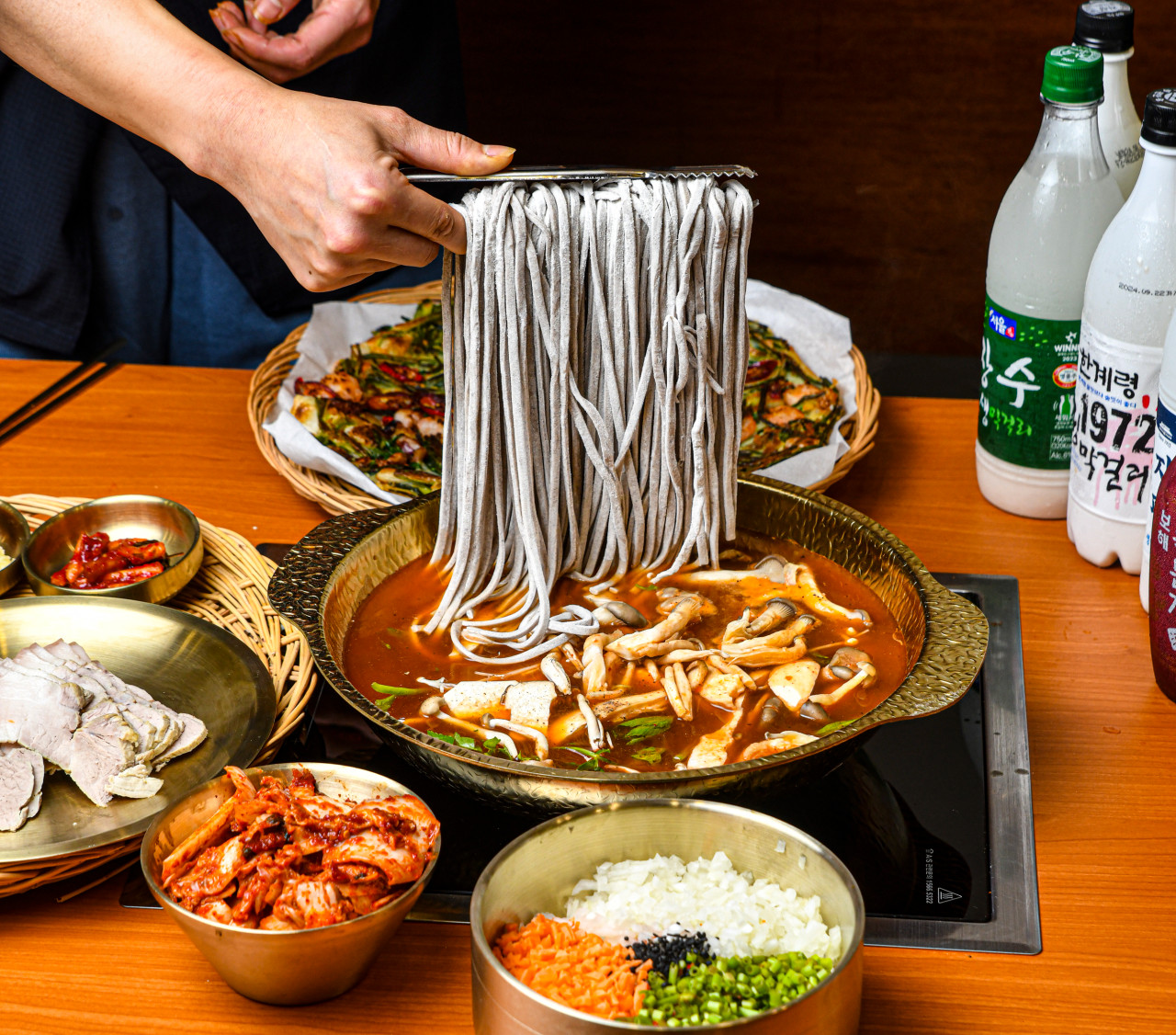 4) 서빙: 끓는 육수에 재료들을 넣고 순서대로 즐기기
