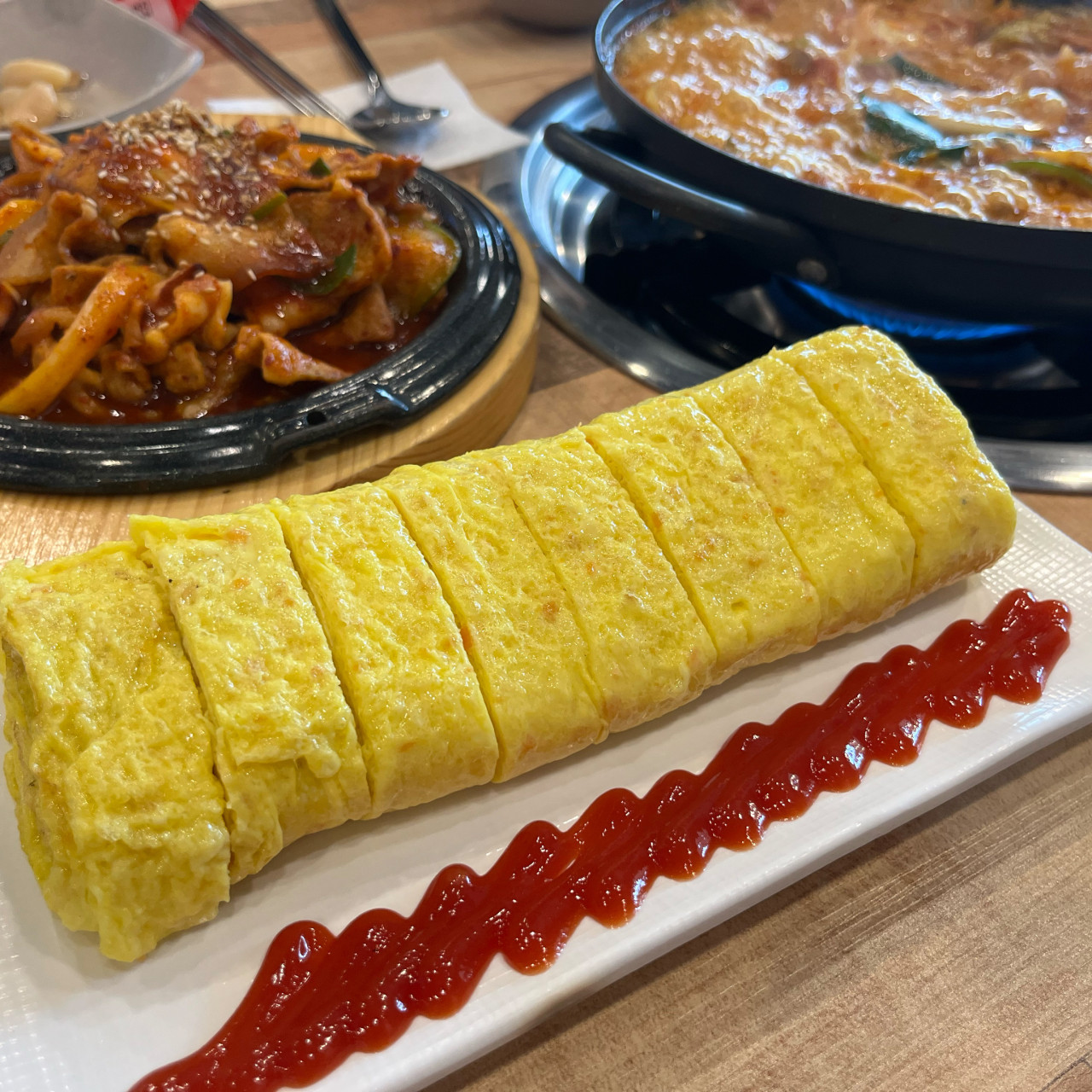 - • 계란말이: 부드러운 맛이 매운 두루치기와 찰떡궁합.
