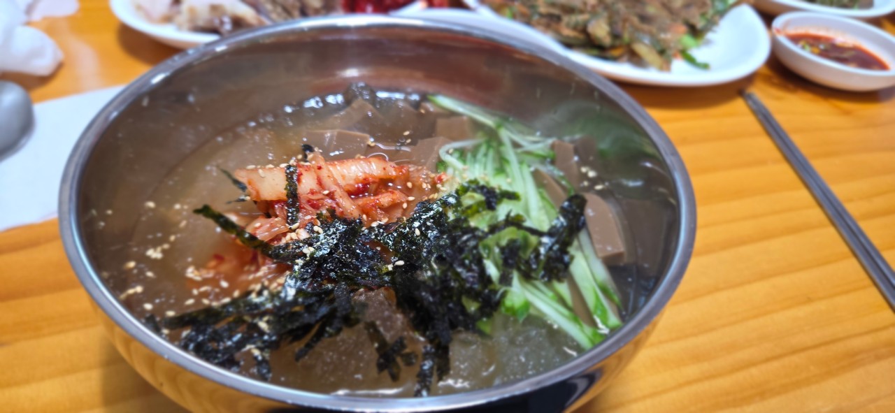- 묵사발 (9,000원): 시원한 동치미 국물 베이스로 여름철 별미로 인기가 높습니다. 새콤달콤한 국물과 도토리묵의 쫄깃한 식감이 조화롭게 어우러져 해장음식으로도 탁월한 효과를 보입니다.