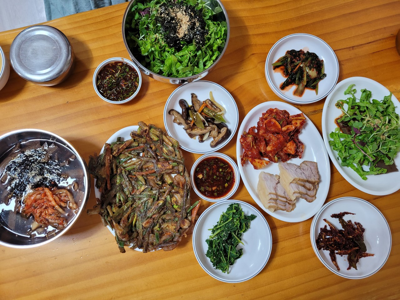 - 도토리파전: 바삭한 겉면과 촉촉한 속살의 대비가 일품인 별미 메뉴입니다. 도토리 전분이 들어가 일반 파전보다 더욱 고소하고 쫄깃한 식감을 자랑합니다.