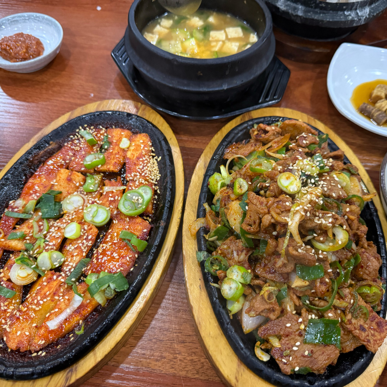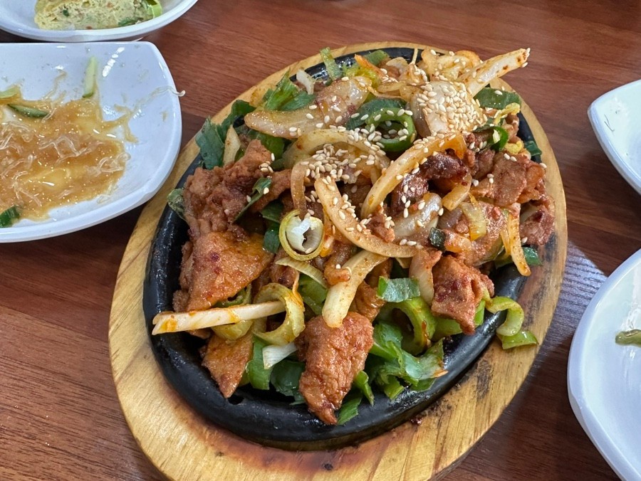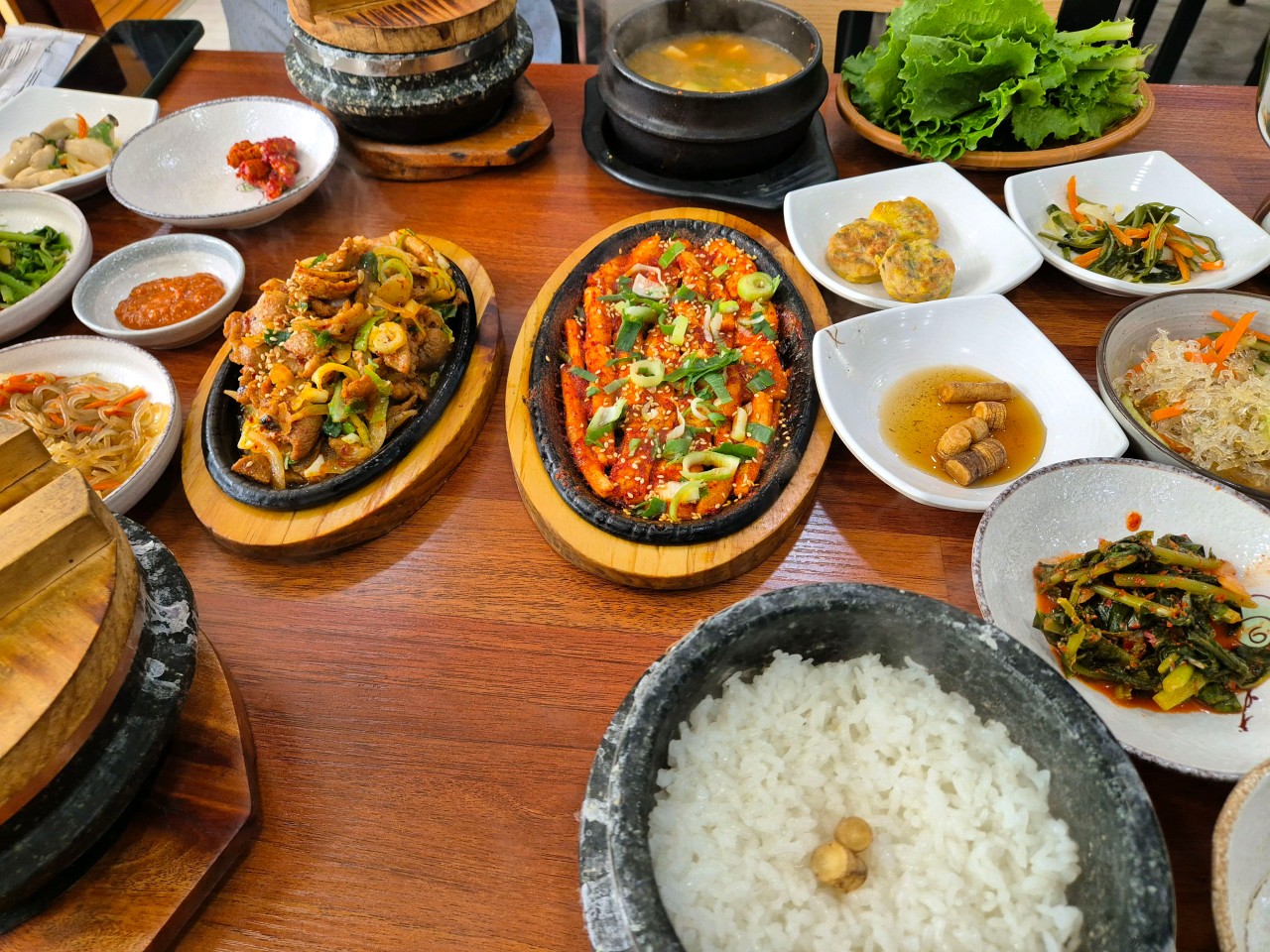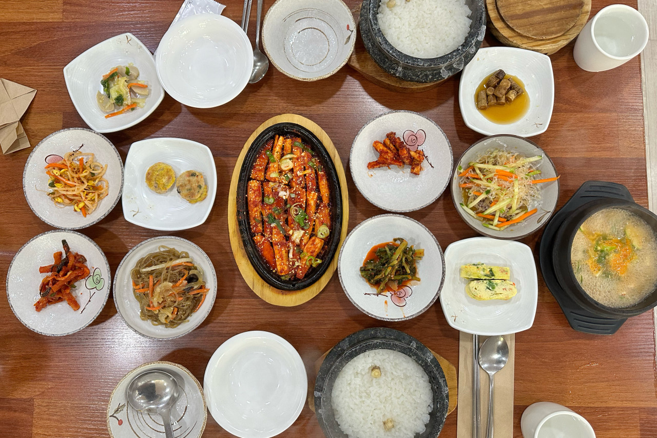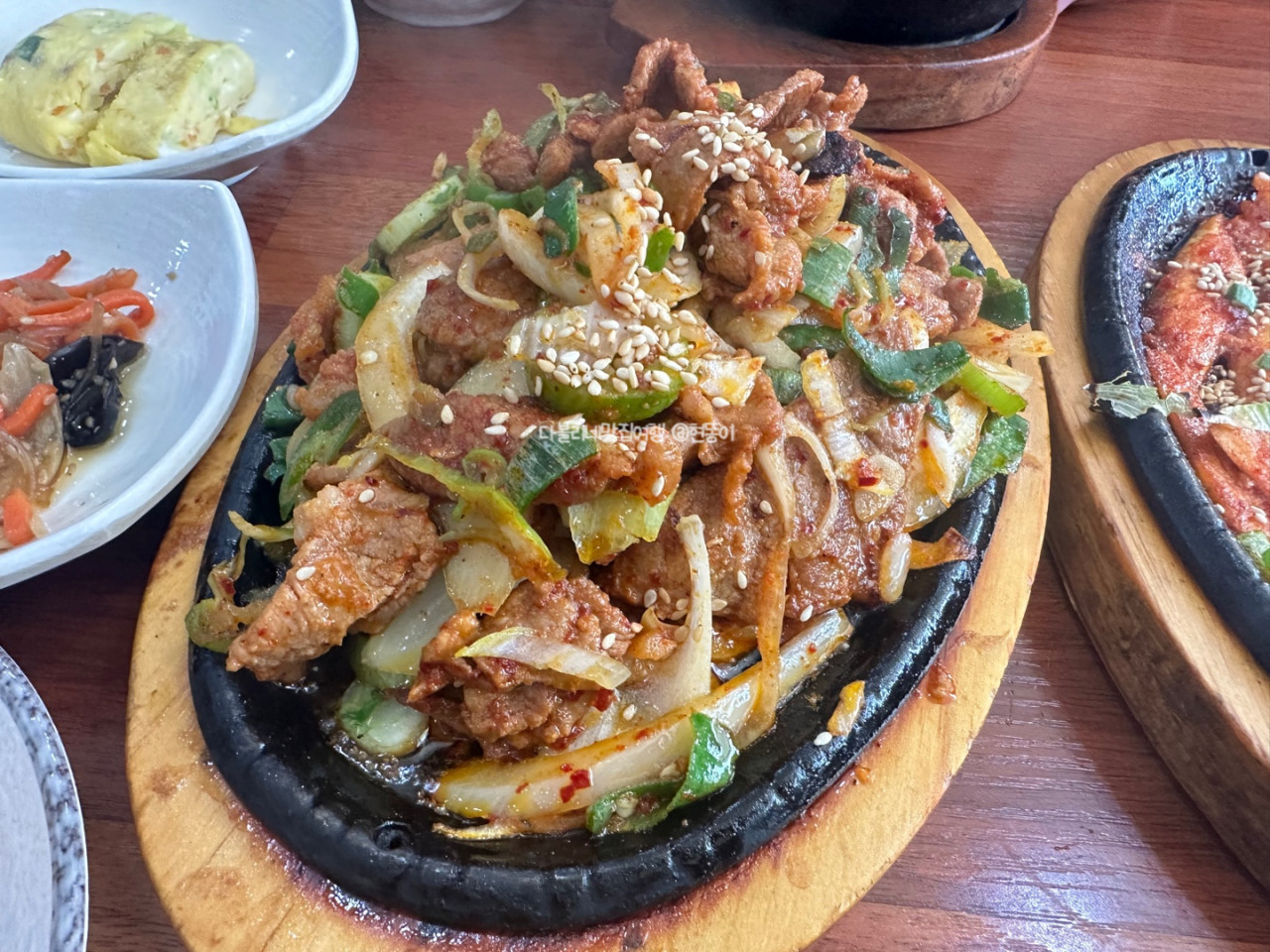 이번에 소개될 고추장불고기한상의 가장 큰 특징은 단순히 저렴하기만 한 것이 아니라, 맛과 구성 모든 면에서 만족도가 높다는 점입니다. '더덕한상'의 고추장불고기한상은 돼지고기에 각종 야채와 함께 볶아낸 매콤달콤한 불고기를 중심으로, 갓 지어 구수한 누룽지까지 즐길 수 있는 돌솥밥, 그리고 깊은 맛의 된장찌개와 10여 가지 정갈한 밑반찬이 함께 제공됩니다.