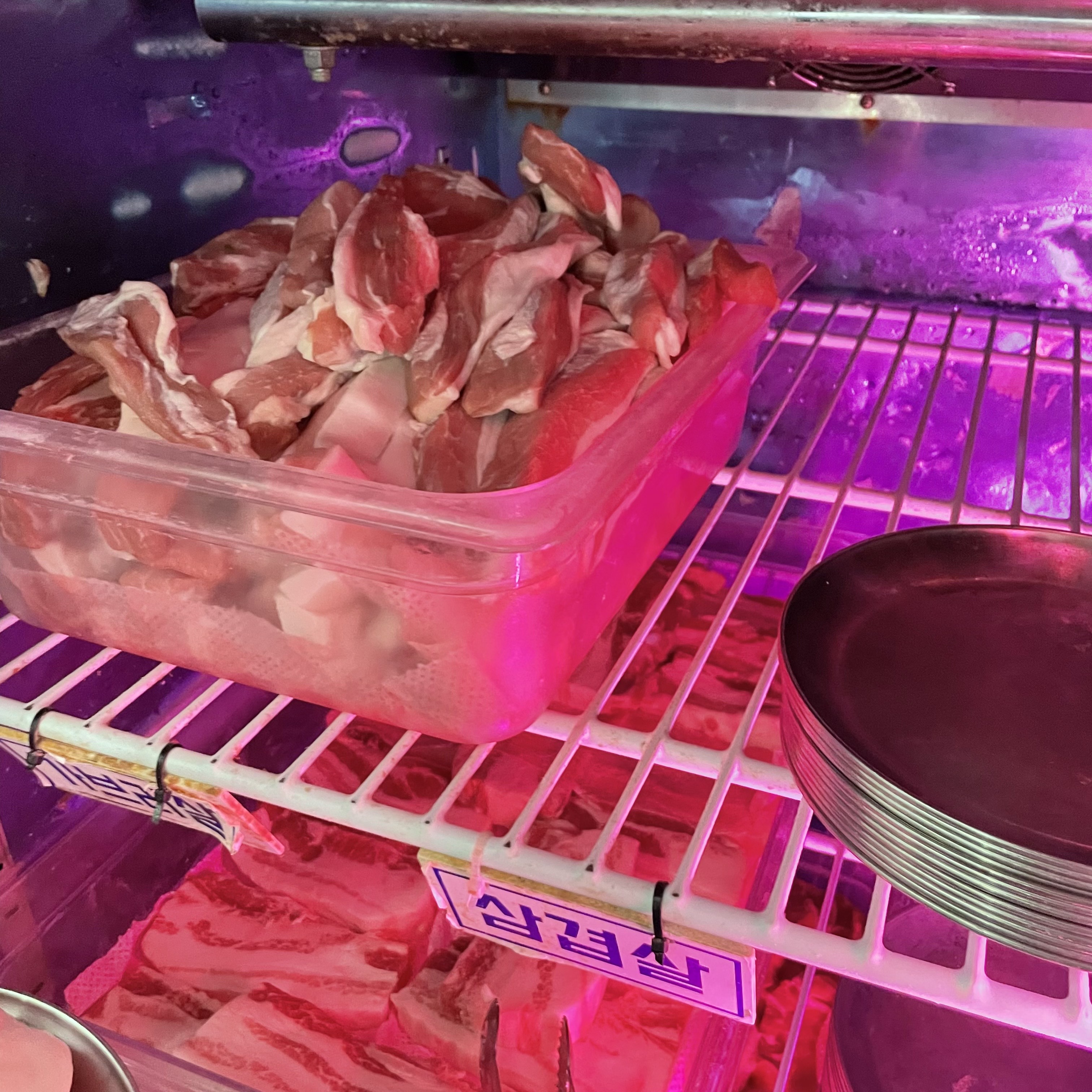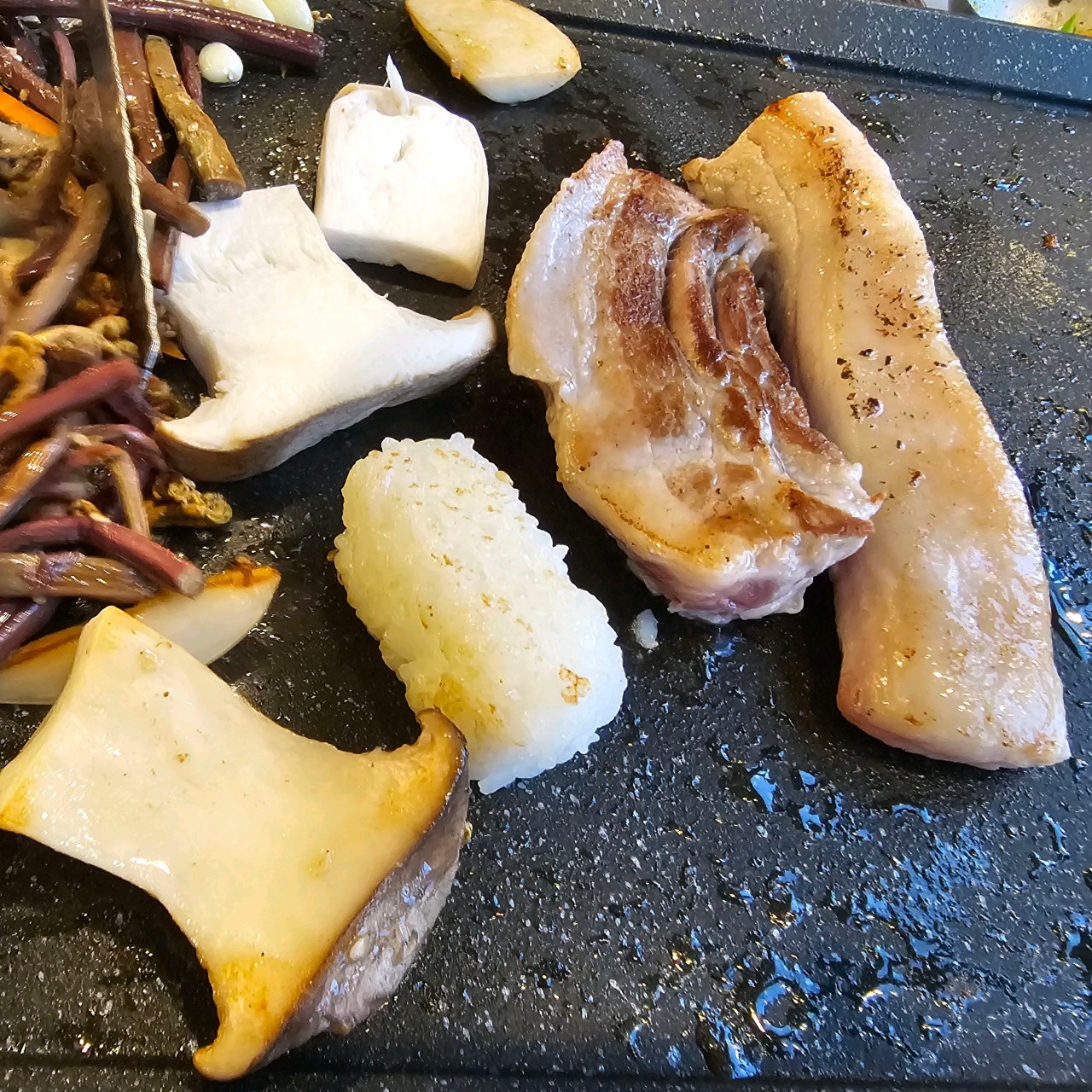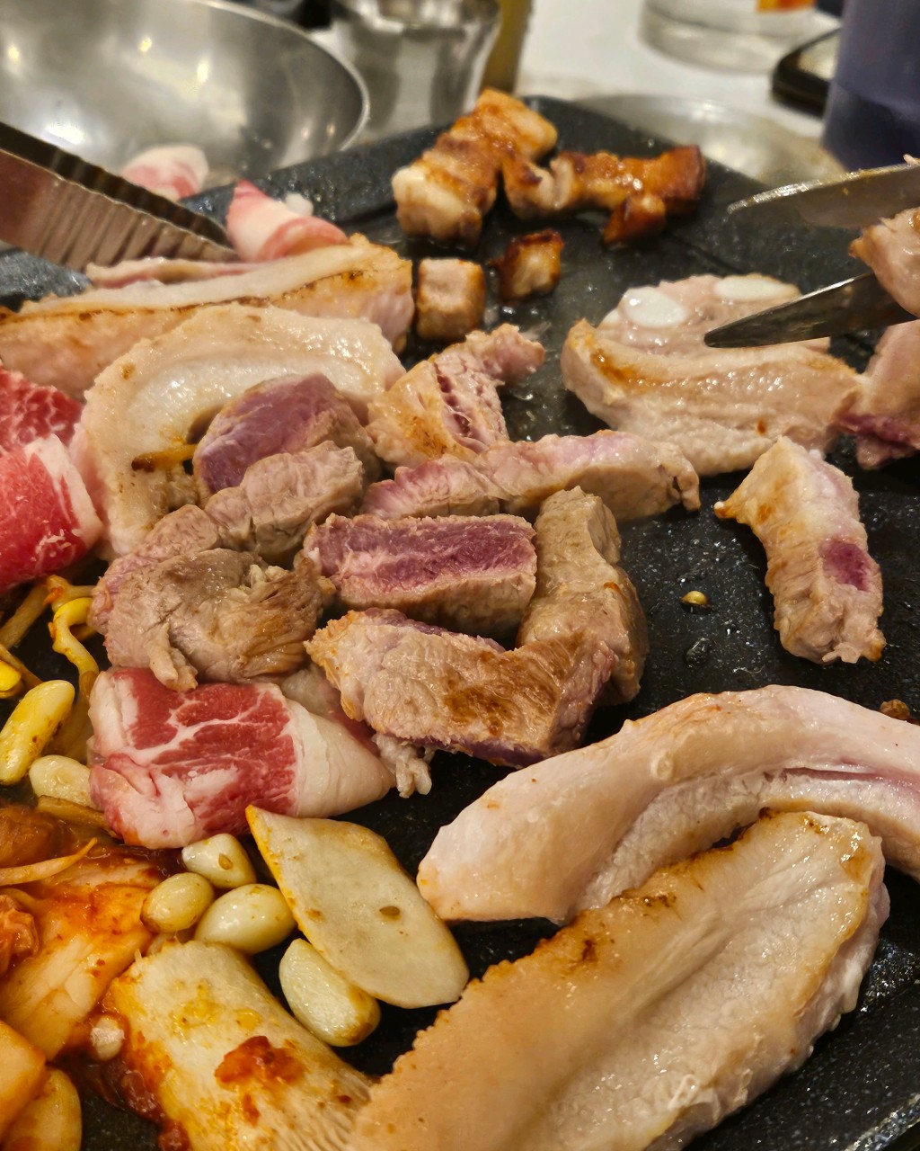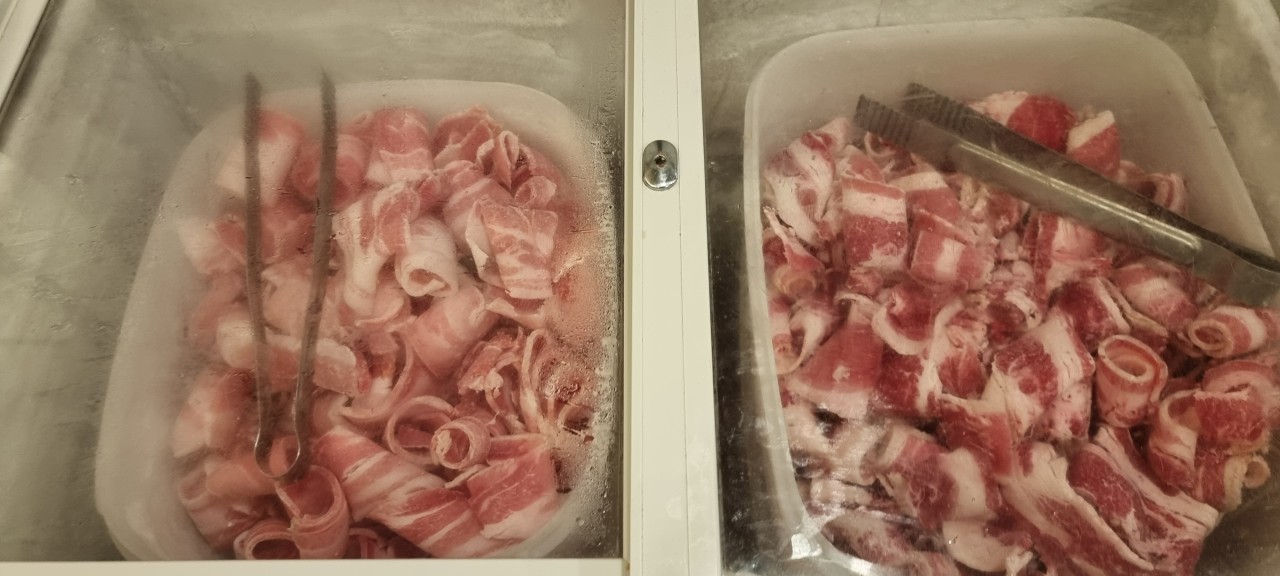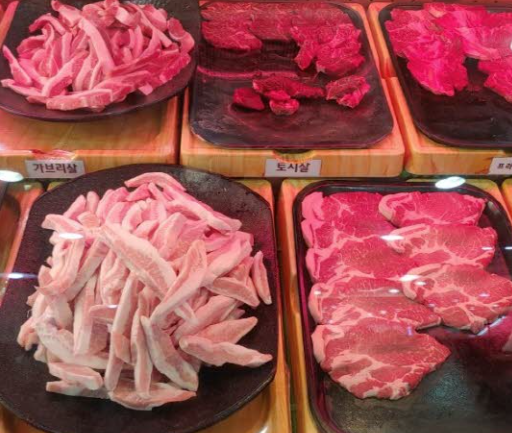 - 무한리필 고기류: 삼겹살, 목살, 가브리살, 항정살, 돼지껍데기, 떡갈비, 우삼겹, 대패삼겹살 등 신선한 생고기와 냉동 고기 모두 제공