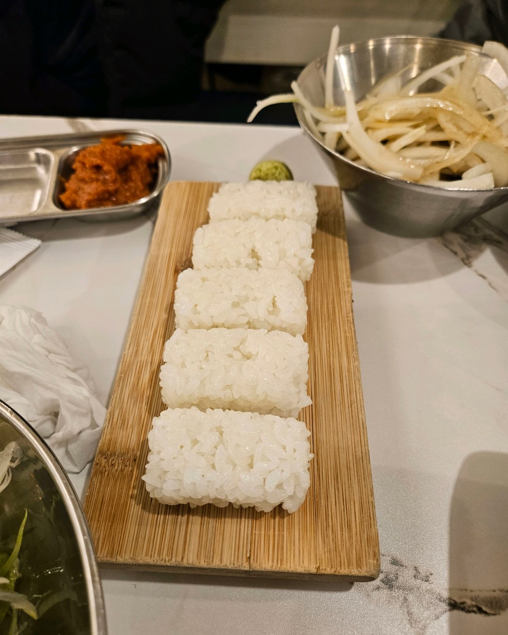 - 우삼겹 초밥 조합 필수: 기본 제공되는 초밥용 밥 위에 잘 구운 우삼겹과 와사비를 올린 조합은 방문객들이 극찬하는 숨은 메뉴입니다.