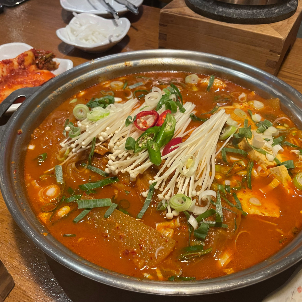 묵은지의 숙성도: 적절히 숙성된 묵은지를 사용하여 감칠맛과 산도의 균형을 맞춥니다