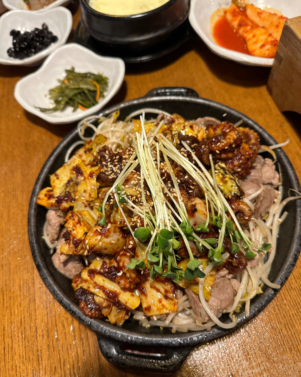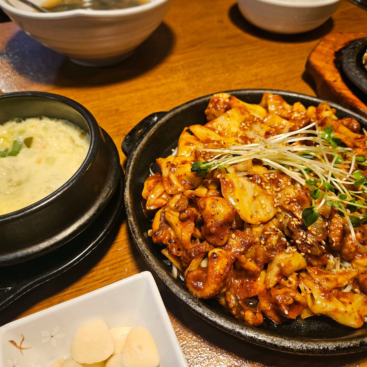 | 직화 쭈꾸미 볶음 | 16,000원 | 본품+솥밥+반찬+샐러드+쌈채소 | 직화의 강한 불맛 |
