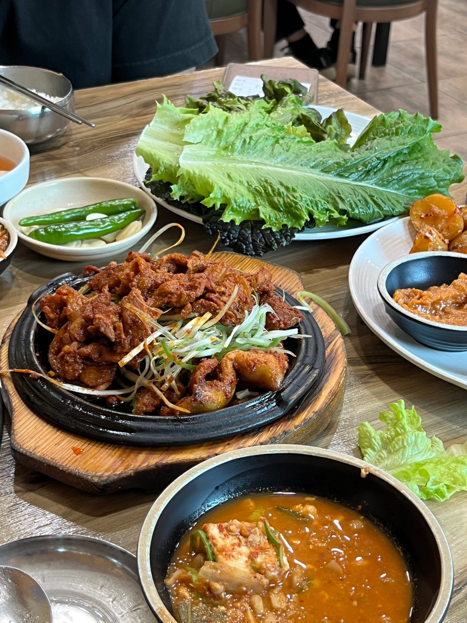 제육볶음은 잡내를 잡기 위해 갖은 채소를 듬뿍 넣고, 직접 담근 고추장으로 맛을 낸다고 알려져 있습니다.