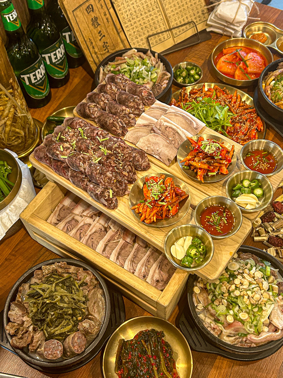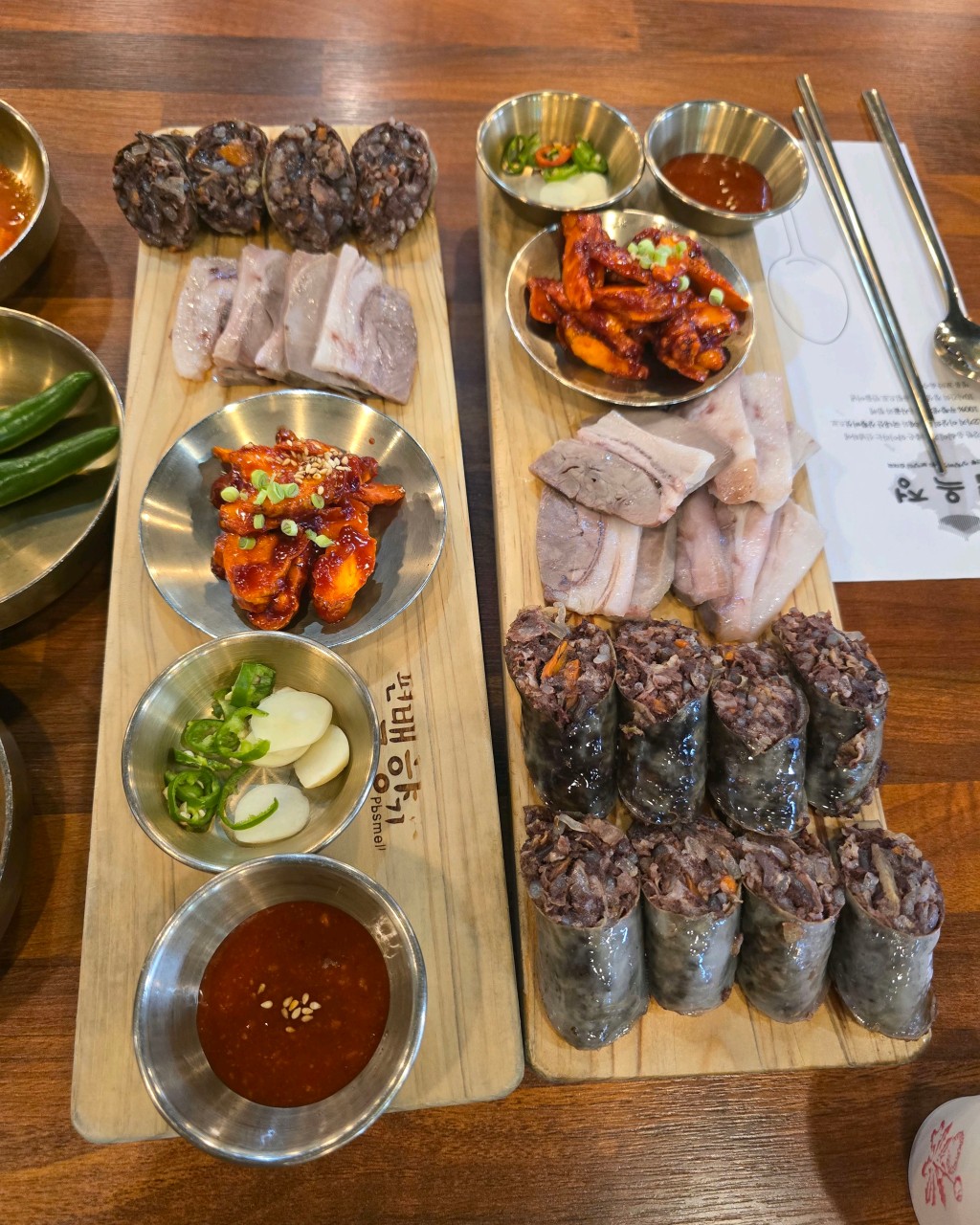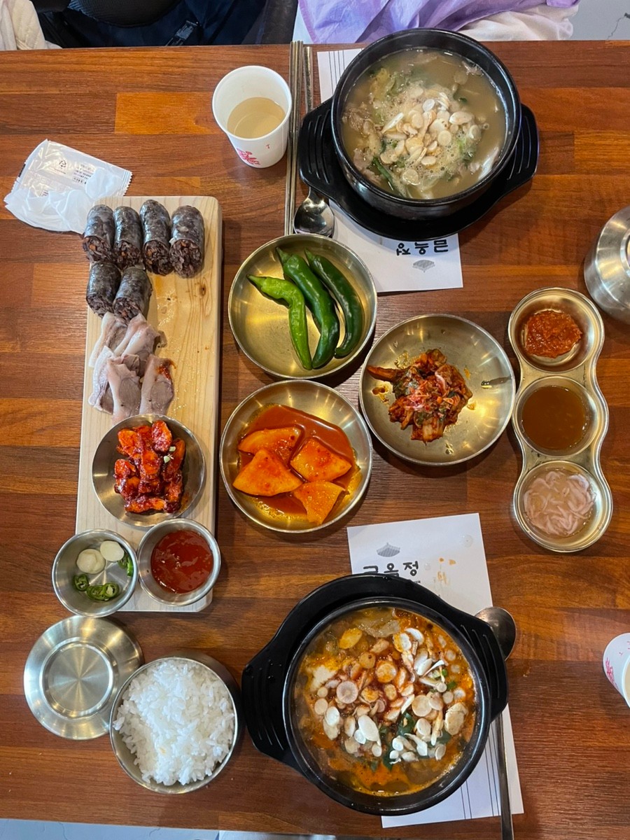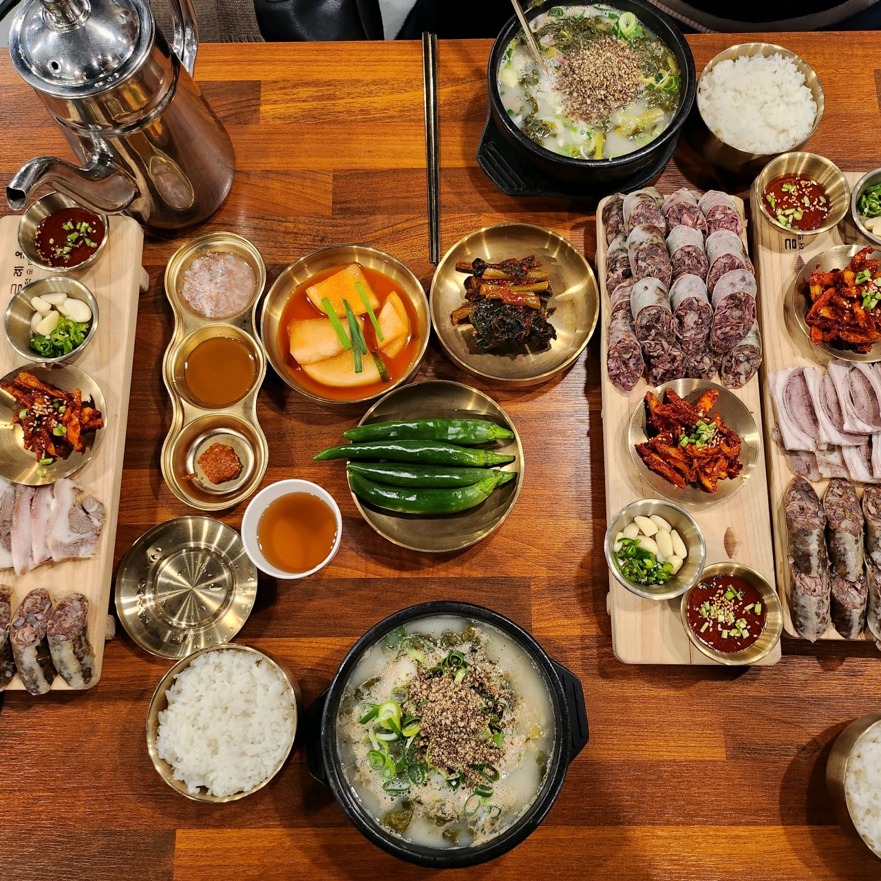 - 정식 메뉴 (14,000원~17,000원): 순대국에 순대, 수육, 더덕무침이 함께 나오는 푸짐한 한 상차림입니다
