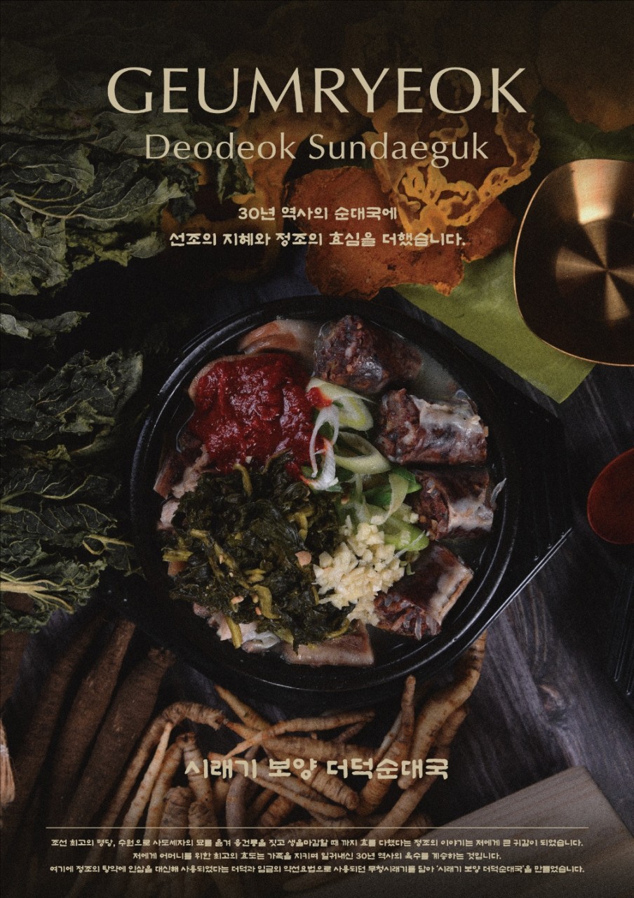 | 얼큰 보양더덕순대국 | 12,000원 | 더덕 + 얼큰함의 조합 |