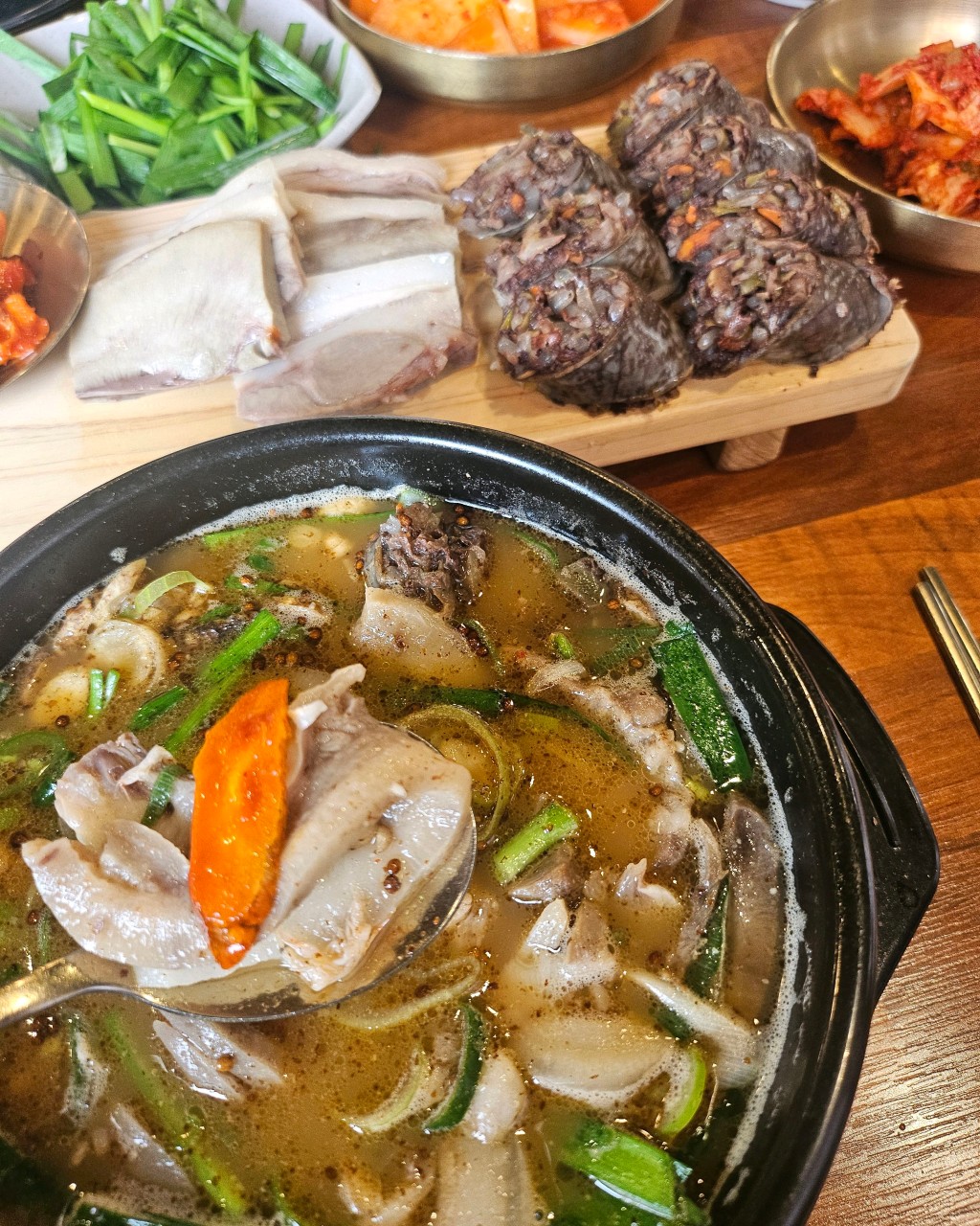 특히 주목할 만한 점은 더덕순댓국의 국물이 일반 순댓국보다 훨씬 깔끔하다는 것입니다. 더덕의 자연스러운 단맛과 쌉싸름한 뒷맛이 순댓국 특유의 누린내를 완전히 잡아주어, 순댓국을 잘 못 먹는 사람들도 부담 없이 즐길 수 있다고 평가받고 있습니다.
